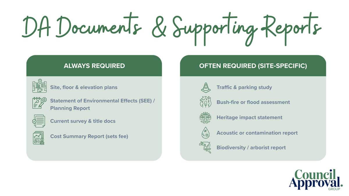 Some people decide to DIY their DA; however, this could cost you more in the end, due to delays caused by incomplete submissions or non-compliant plans lacking sufficient supporting evidence for approval.